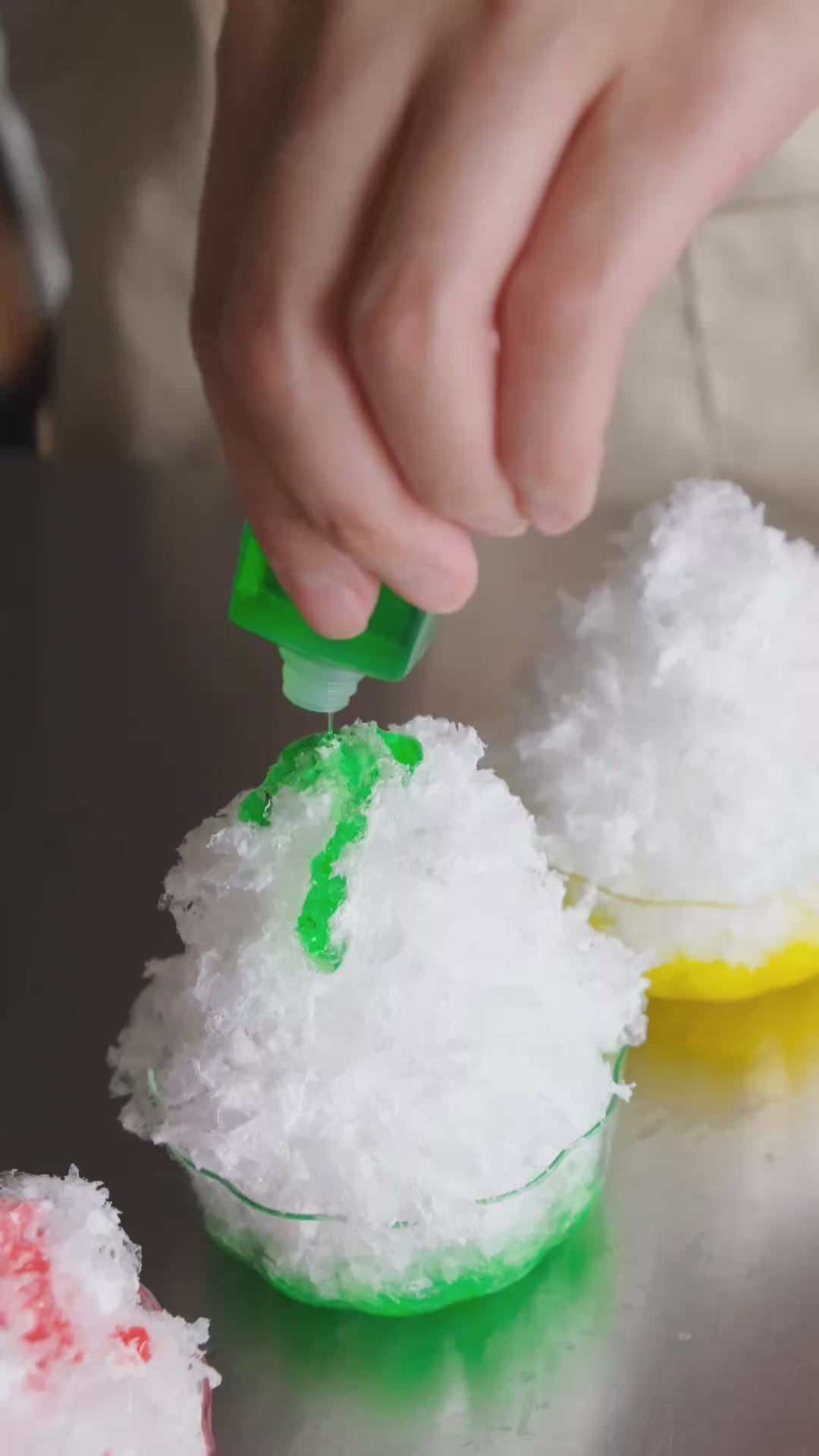 江戸時代から愛されている宇治金時。トッピングは王道に、抹茶シロップ・小豆・白玉にしました。サンプルなので、溶けないかき氷です。オプションパーツを追加して世界に一つだけのかき氷にしませんか?