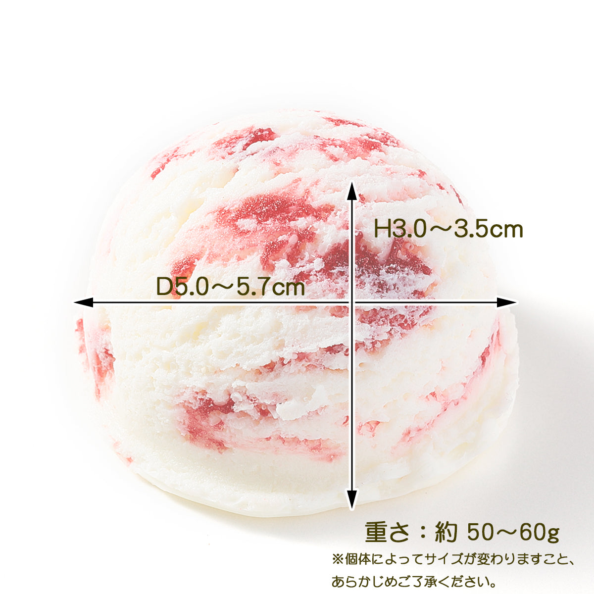 【 職人メッセージ 】 すくいたてのアイスを、そのままに。 ディッシャーサイズ 14号をご用意いたしました。食品サンプルなら、形も色もそのまま長持ちすることができ、撮影や長時間の展示も安心してお使いいただけます。