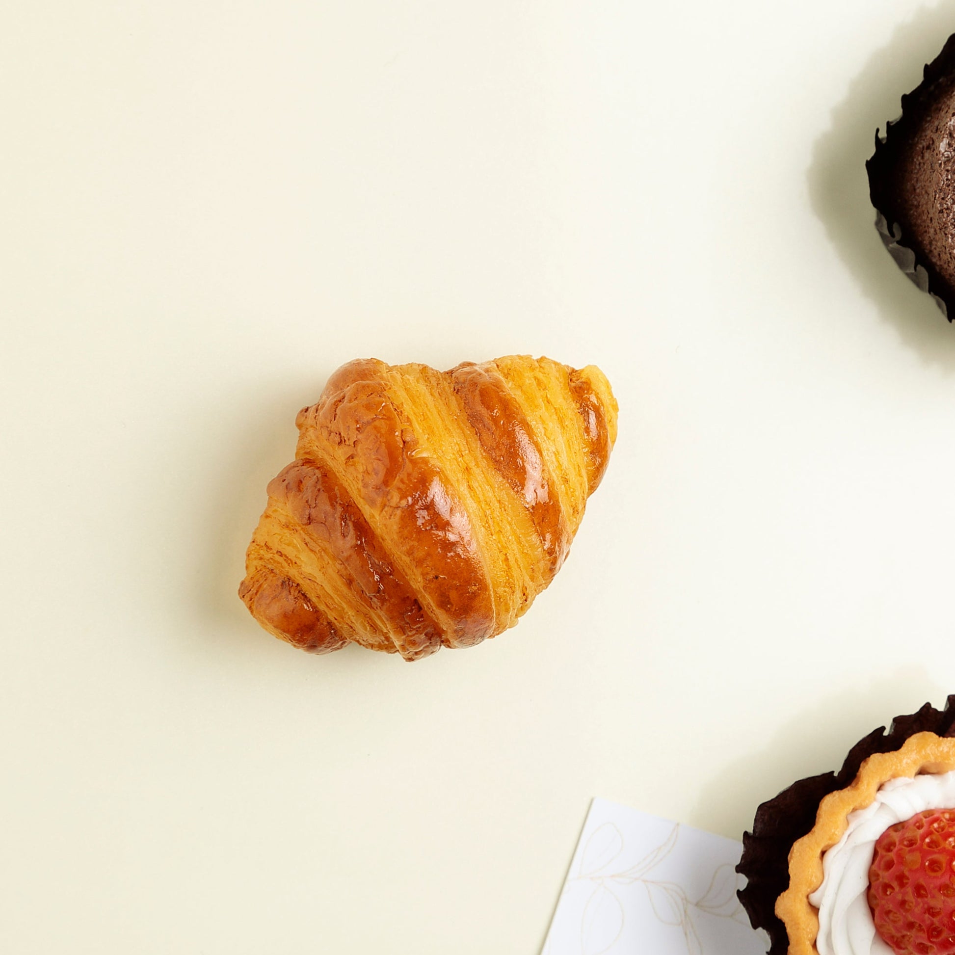 【 職人メッセージ 】 ミニサイズでありながら、原型は実際にクロワッサンを焼いて製作しました。ポイントはクロワッサンならではの、層に沿った焼き色。筆塗りにすることにより、バターをぬって焼いたような色ムラを表現しました。