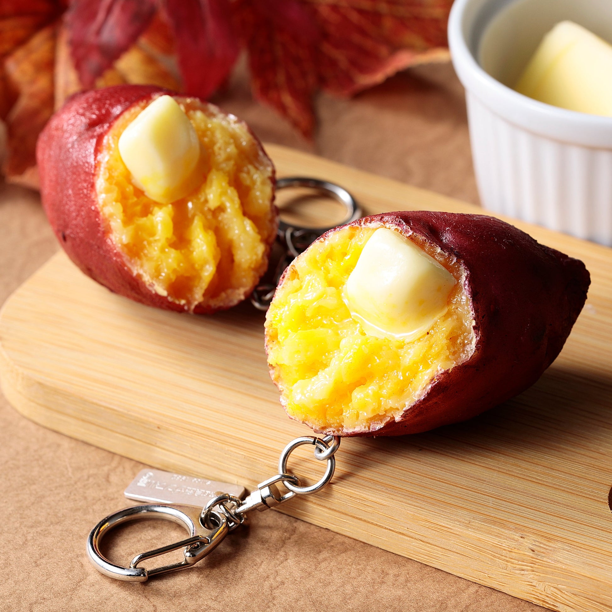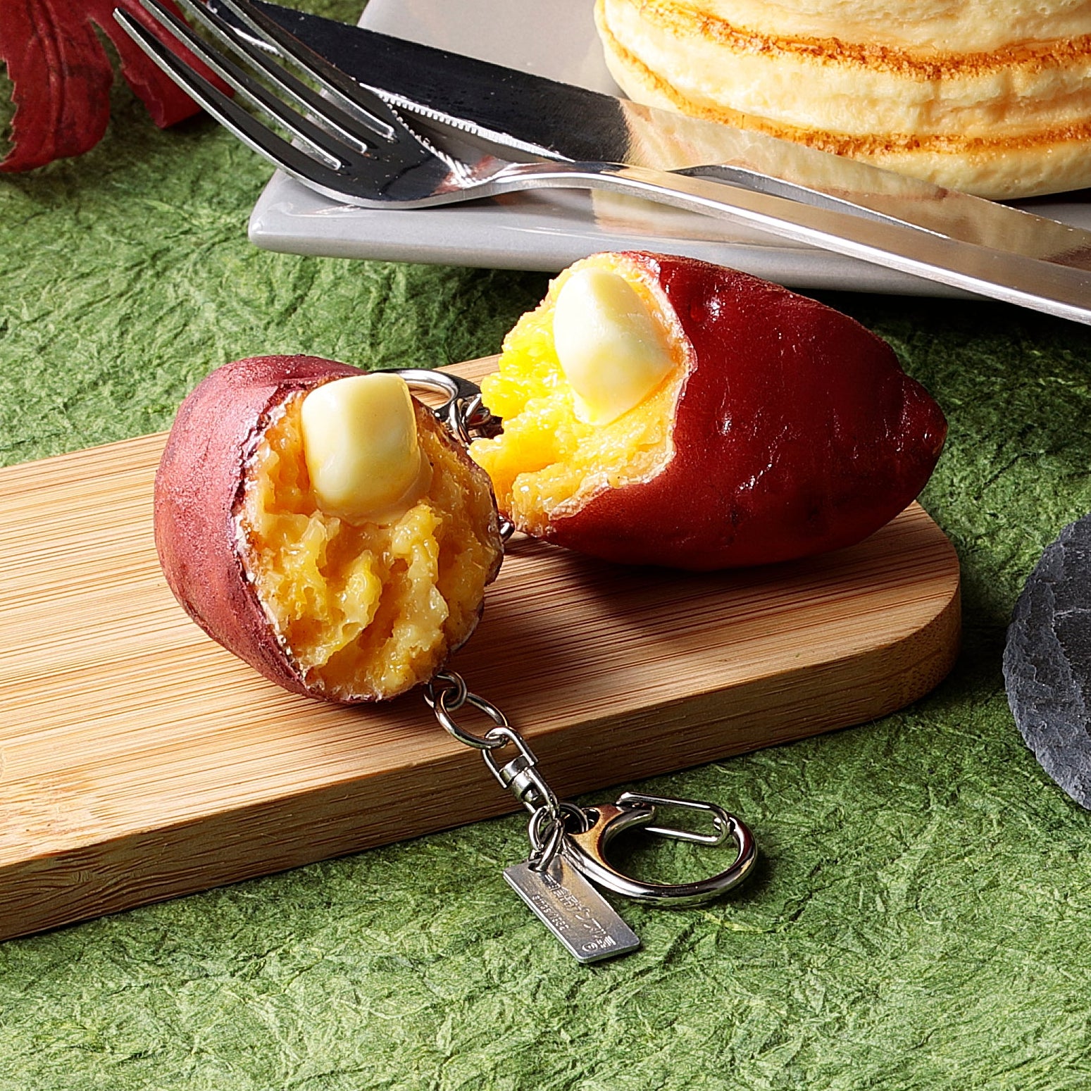 リアルサイズのさつまいもにしました。断面のホクホク感とバターのシズル感は食品サンプルならではの表現です。