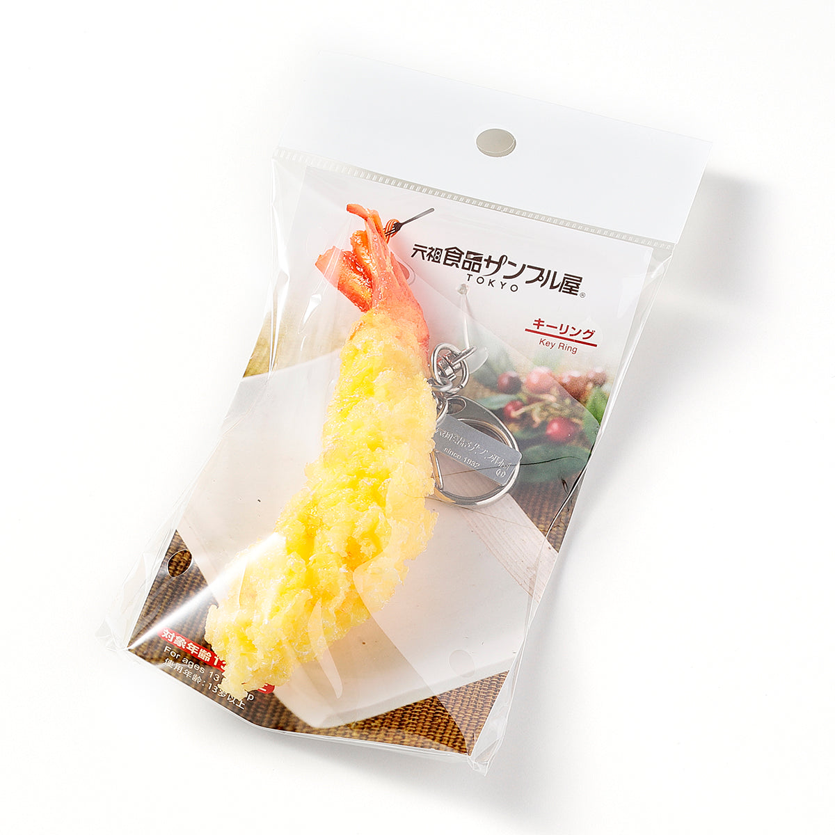 【 職人メッセージ 】 「キーリング 天ぷらシリーズ」と同じ製造方法にすることで、衣越しに海老が透けている部分を表現することができました。 衣越しに海老が透けているところがポイントです。